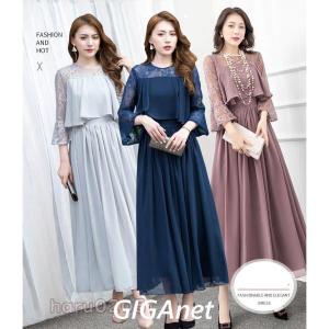 パーティードレス 結婚式 ワンピース ドレス 袖あり 大きいサイズ フォーマル ロング丈 ロングドレス レース 長袖 七分袖 二次会 披露宴 お呼ばれ 上品 膝下