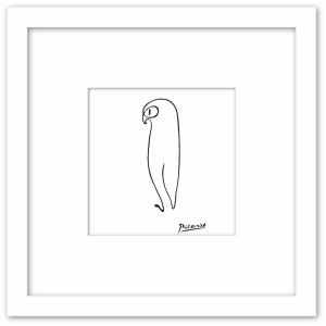 名画 ラインアート パブロ・ピカソ 署名入り フクロウ ホワイトフレーム ゆうパケット Sサイズ