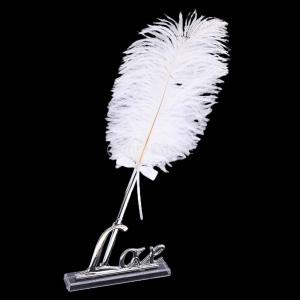 ゲストペンとスタンド、スタンド付きのエレガントな羽根ペン、結婚式の署名、ブライダルギフトの結婚披露宴パーティー用のゲストブック署名