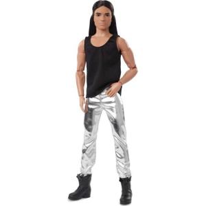 Barbie バービーの署名は、黒いタンクトップとメタリックパンツを着て、ケンドール(長いブルネットの髪)完全にポーズ可能なファッション人形を見せます。