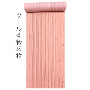 ウール着物 反物 u-7 オレンジ地・シマ柄【訳有り】