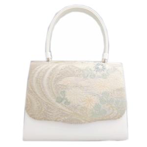 【訳有り 少難あり】 バッグ 手提げ 夏用 帯地 金糸入り 被せ型 白地流水菊花 日本製 単品 着物 和装 洋装 夏物 女性用 和柄