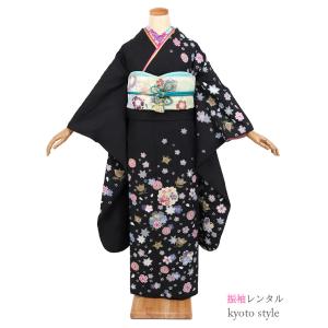振袖レンタル 成人式 フルセット 結婚式 パーティー 振袖レンタル 貸衣裳 着物 レンタル シンプル 柄少なめ 女性 レディース 黒 ブラック 72131