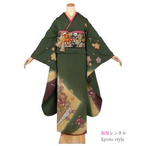 振袖 レンタル 成人式 緑 トールサイズ フルセット 結婚式 振袖レンタル 成人式 パーティー お正月 卒業式 結納 着物 レンタル 柄少なめ 72148