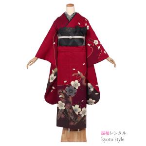 振袖レンタル 成人式 赤 レッド フルセット 結婚式 パーティー 卒業式 振袖 レンタル 貸衣裳 着物 レンタル かわいい 柄少なめ レトロ 女性 桜柄 72159
