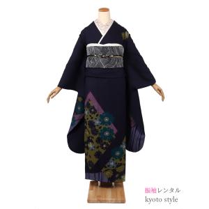 振袖レンタル フルセット 成人式 結婚式 振袖 レンタル 紺 ネイビー 着物 レンタル 女性 貸衣裳 振り袖レンタル 柄少なめ 72236