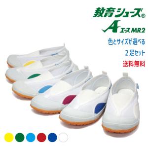 【2足セット】教育シューズAエース MR2 白/青/赤/グリーン/イエロー/ライトブルー(教育MR2)6色
