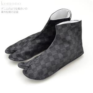 足袋 こはぜ付き 通年用 日本製 男物 デニム 市松 柄足袋 黒底 たび コハゼ付き メンズ