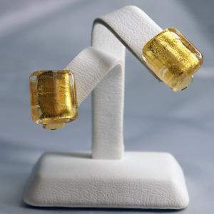 イヤリング ベネチアングラス イタリア製 角 K24金箔入り ゴールド ベネチアンガラス クリップ式