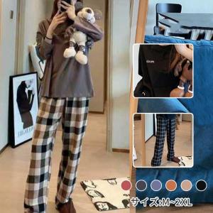 パジャマ ルームウェア 上下セット レディース 部屋着 チェック 長袖 長ズボン オーバーサイズ