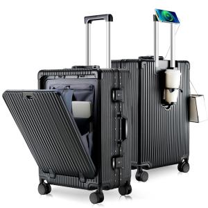 Color:ブラック_Size:Sサイズ /42L /機内持込 (1-3泊) [SnooII] スーツケース 機内持ち込み 多機能フロントオープン キャリーケース ストッパー付き 携帯スタ