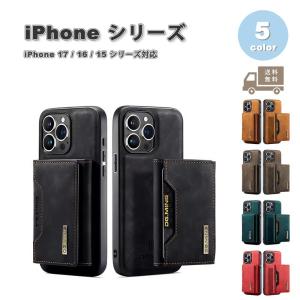 iPhone レザー 耐衝撃 カード収納 取り外し可能 ケース 全5色 17 / 16 / 15 シリーズ対応 耐衝撃 薄型 軽量 カバー 送料無料