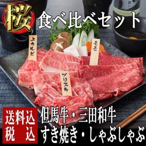 肉 牛肉 黒毛和牛肉ギフト 食べ比べ 但馬牛・三田和牛食べ比べセット 三種 桜 すき焼き・しゃぶしゃぶ300g ミートマイチク