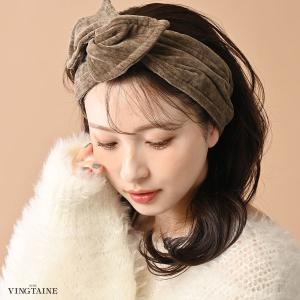 ヘアバンド ベロア アシンメトリー リボン 霜降り ワイヤー入り ターバン H7861 mbgt