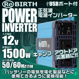 【正弦波/定格出力1500W】インバーター 非常用電源 車 12V 100V ポータブル電源 カーインバーター 非常用電源 車中泊 定格1500W