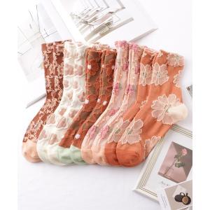 靴下 「10足セット」 レトロ 立体 フラワー レリーフ クルー丈 ソックス レディース