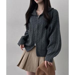 ニット セーター ダブルジップ ケーブルニットカーディガン レディース