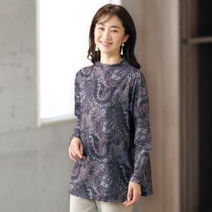 チュニック 大人可愛い おしゃれ 秋冬 ミセス シニア ファッション 40代 50代 60代 70代 80代 ペイズリー柄ボトルネックチュニック