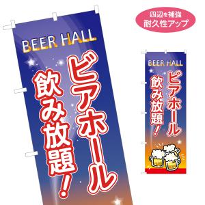 のぼり旗 ビアホール 乾杯イラスト 飲み放題 名入れ無料 2サイズ W60×H180cm W50×H150cm Y-1127-14