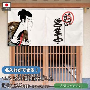 のれん 横長 名入れ 文字入れ 店名 営業中 写楽 170cm幅 85cm丈 4つ割 エステル帆布 丈夫 厚手 暖簾 業務用 店舗用 飲食店(受注生産 48737)