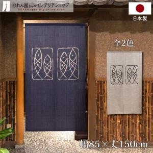 のれん 和風 モダン 暖簾 和柄 85cm幅 150cm丈 半間 間仕切り 麻生地風 魚 ネイビー 生成り 全2色 店舗用 飲食店(受注生産 98256 98257)