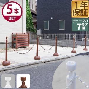 チェーンスタンド 車止めポール 5本セット 7mチェーン/反射テープ付き 駐車禁止 立入禁止 フェンス 仕切り 駐車場ポール 車止めチェーン 送料無料