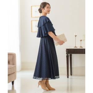 ドレス 刺繍レース切り替えプリーツロング結婚式ワンピースドレス
