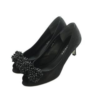 アンテプリマ ANTEPRIMA パンプス オープントゥ ビジューリボン 22.5cm 黒 /MI ■OS レディース