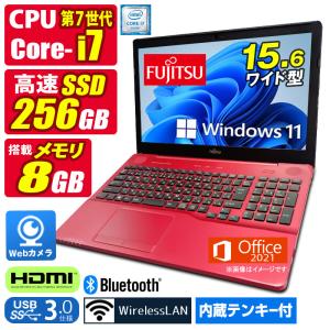 中古ノートパソコン Windows11 MicrosoftOffice2021 富士通 AH53/B2 第7世代 Core i7 メモリ8GB SSD256GB 15.6型 FHD テンキー Webカメラ HDMI ブルーレイ 無線