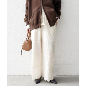 パンツ bon_meur:「洗濯機可能」ロゴ エンブロイダリー パッチワーク ワイド パンツ レディース