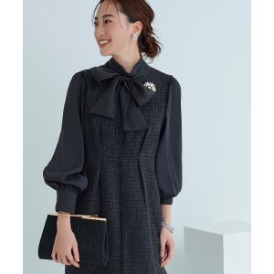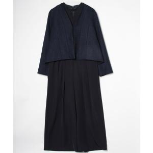 ワンピース ミックスツイードコンビ・ロングナローワンピースドレス