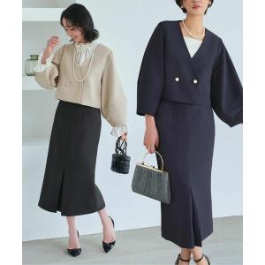 セレモニースーツ セットアップ 「選べるジャケット素材」クロップドランタンスリーブジャケット&ロングタイトスカートスーツ レディース