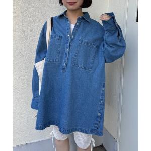 ブラウス シャツ デニムフーディーシャツ レディース