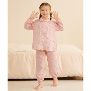パジャマ おなか安心ボタン付き長袖前開きガーリーガーゼパジャマ(いちご) キッズ 子供 女の子