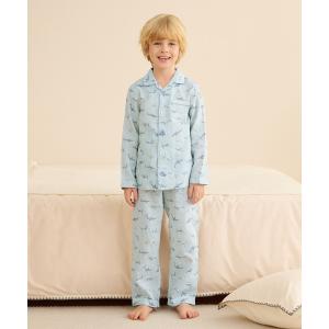 パジャマ おなか安心ボタン付き長袖前開きガーゼパジャマ(サメ) キッズ 子供 男の子