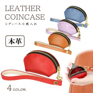 小銭入れ コインケース コンパクト 本革 ストラップ付き 大容量 ベジタブルタンニングレザー レディース
