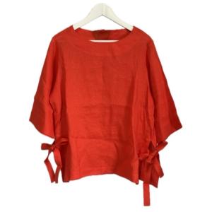 ドゥクラッセ DoCLASSE リネン ブラウス 9 リボン オレンジ 麻 長袖 トップス レディース