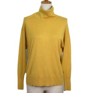 ドゥクラッセ DoCLASSE なめらかヤーン ハイネック配色ニット XS マスタード レディース