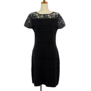 ドゥクラッセ DoCLASSE ワンピース ニット プルオーバー レース 半袖 L 黒 ブラック レディース