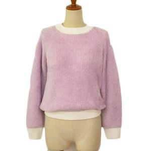 ドゥクラッセ DoCLASSE 配色ニット スリットタートル S 紫 パープル レディース