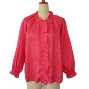 ドゥクラッセ DoCLASSE 21番リネン フリルトリムVネックブラウス 7 ピンク レディース