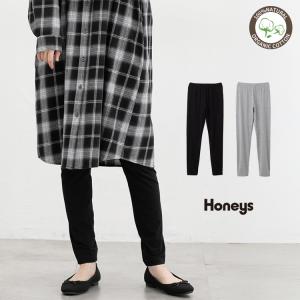 ボトムス パンツ オーガニックコットン 大きいサイズ 10分丈 綿混 無地 ウエストゴム レイヤード シンプル レディース Honeys ハニーズ レギンス