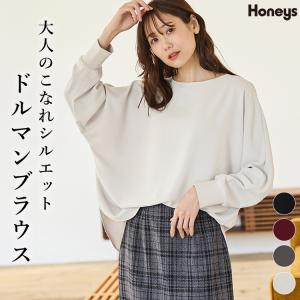 トップス ブラウス 長袖 ドルマン袖 ボートネック ジョーゼット素材 無地 袖口リブ カジュアル オールシーズン レディース Honeys ハニーズ ドルマンブラウス