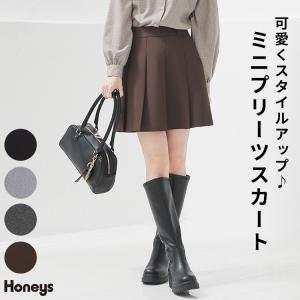 ボトムス スカート ミニスカート ミニ丈 プリーツスカート 再生ポリエステル 無地 内側パンツ 後ウエストゴム レディース Honeys ハニーズ ミニプリーツスカート