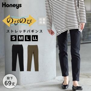 ボトムス パンツ パギンス 抗菌 抗菌防臭 防臭 股下69cm ストレッチ ツイル素材 無地 レディース Honeys ハニーズ ストレッチパギンス(股下69cm)