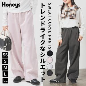 ボトムス パンツ カーブパンツ スウェットパンツ ロングパンツ ウエストゴム 無地 綿混 ガーリー レディース Honeys ハニーズ スウェットカーブパンツ