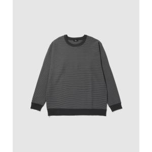 ニット セーター メンズ 軽量 ストレッチ クルーネック ボーダー トップス