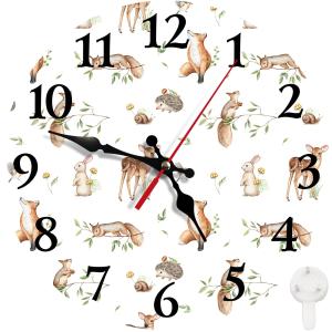 【並行輸入品】 ラウンド ウォールクロック サイレント ノンカチカチ 電池式時計 12 インチ ボタニカル サファリ 鹿 キツネ フクロウ クマ
