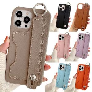【送料無料】iPhone15 ケース スタンド機能 カード収納 リング付き バンド付き PUレザー 持ち手 ベルト スマホバンド 落下防止ベルト スマホベルト 片手操作 取