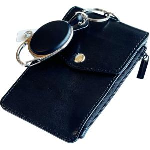 定期入れ メンズ レディース 4枚 リール付き 小銭入れ付き パスケース 薄型(ブラック)